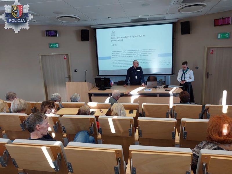 Policjanci Komendy Powiatowej Policji w Polkowicach zorganizowali spotkanie pod nazwą „Porozmawiajmy o bezpieczeństwie seniorów – Możesz mieć na nie wpływ” w sali Uczelni Jana Wyżykowskiego. W debacie wzięli udział seniorzy oraz przedstawiciel Biura Terenowego Zakładu Ubezpieczeń Społecznych.