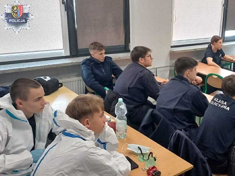 Młodzież miała okazję praktycznie ćwiczyć pobieranie odcisków palców oraz zapoznać się z zasadami pracy na miejscu zdarzenia i sporządzania szkicu. Zajęcia wpisują się w program nauczania oddziału mundurowego i klas o profilu policyjnym oraz stanowią element współpracy szkoły z Komendą Powiatową Policji.